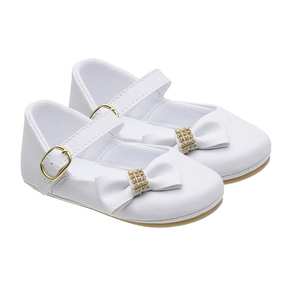 Feita especialmente para a sua princesa essa sapatilha boneca possui fino acabamento, com laço bordado em strass e fechamento em fivela.